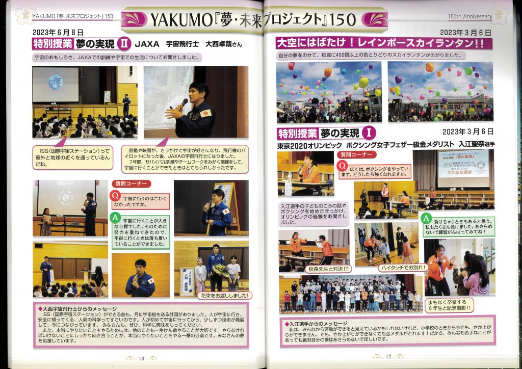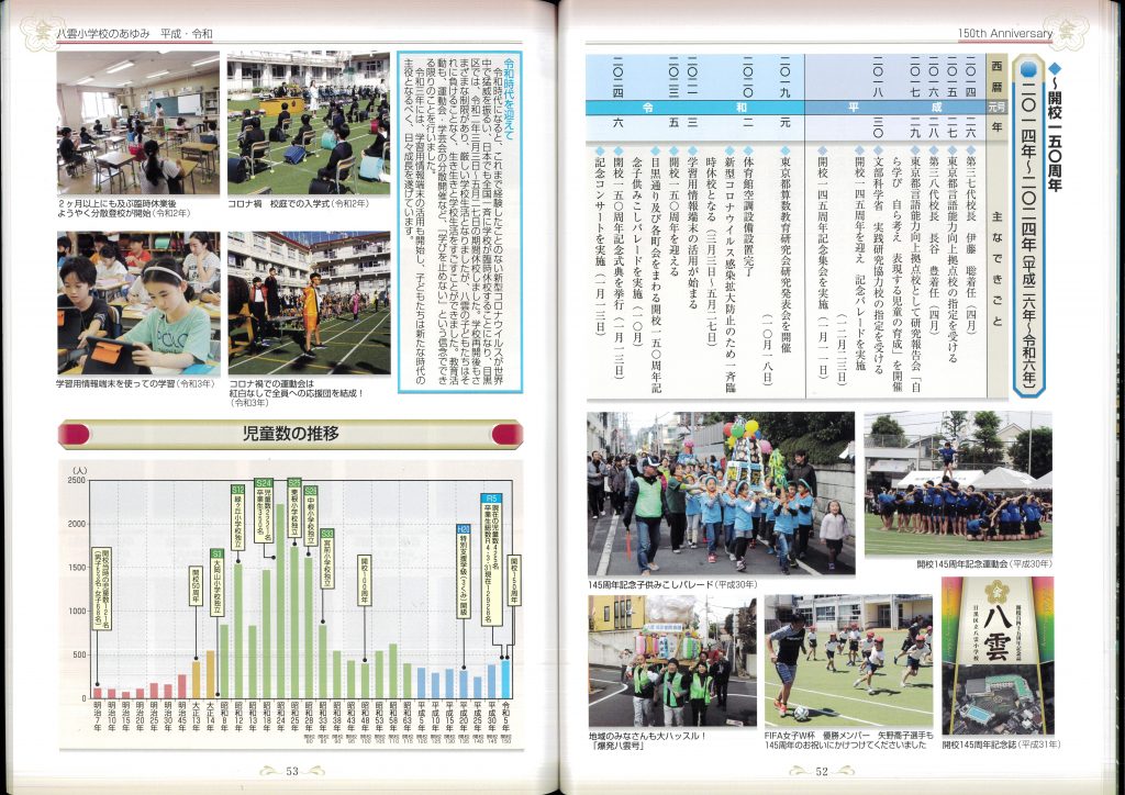 式典は令和6年の1月に行い、それまでの記念行事を入れて、あゆみも開校前から10年ごとに2ページを使い、この学校の集大成としてこの記念誌を発行しました、88ページになりました