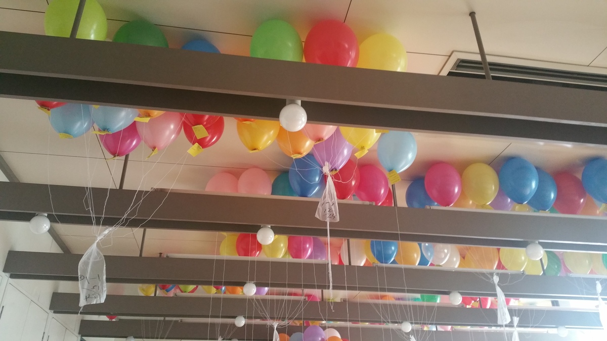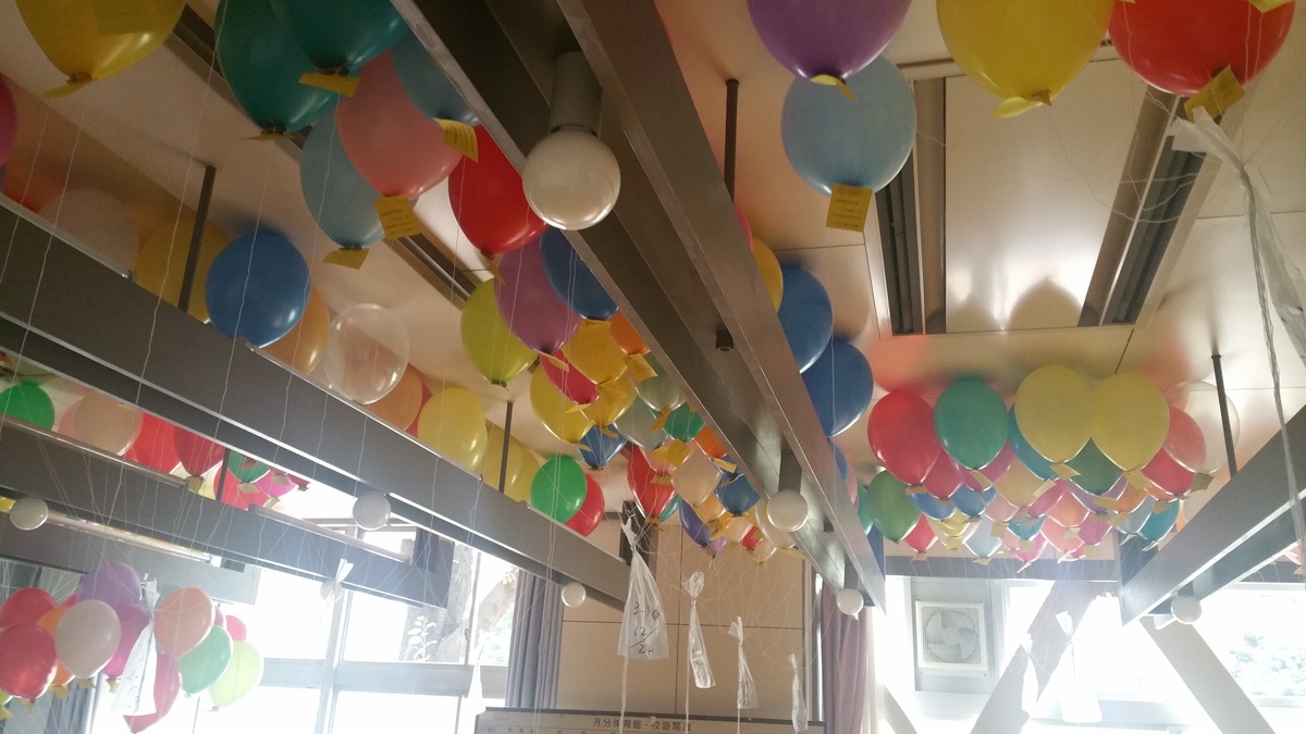 9時半過ぎには準備準備を終えました膨らまし、メッセージカードを付けて、クラス別に束ねて保護者に渡しました。
