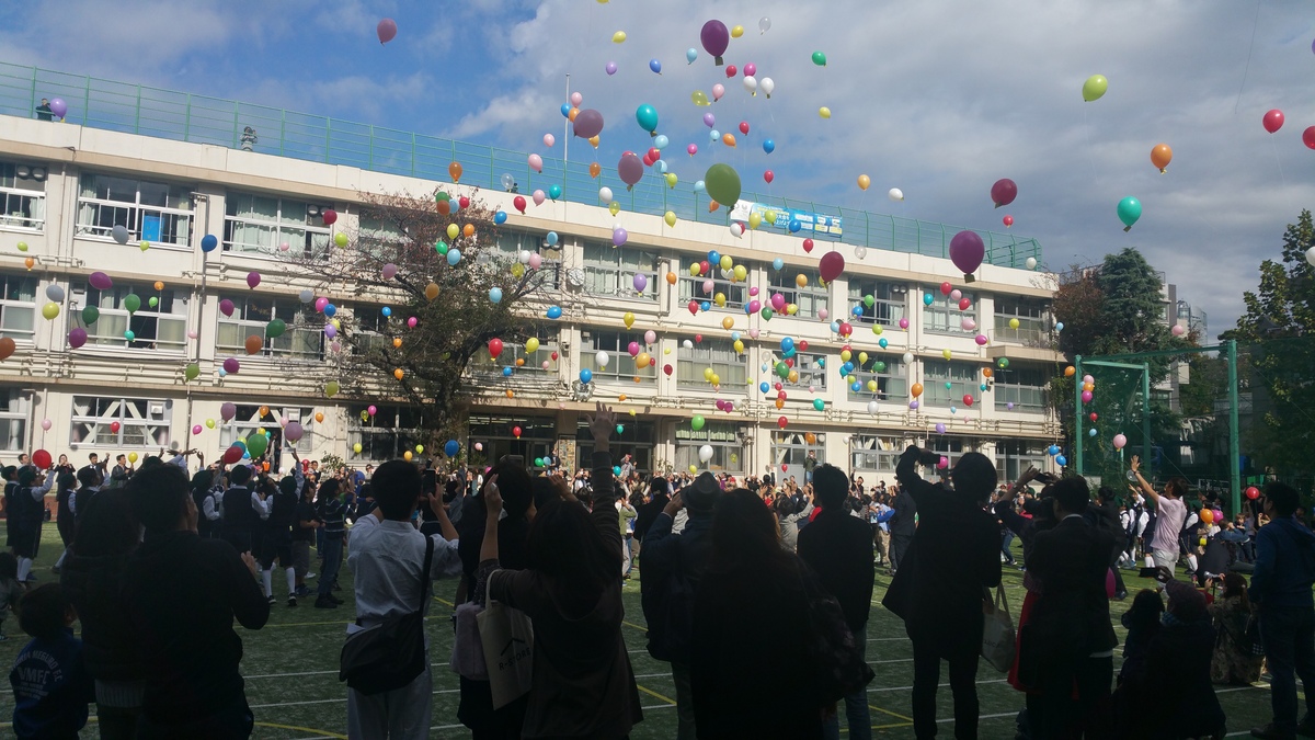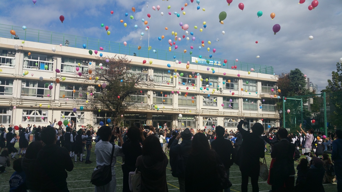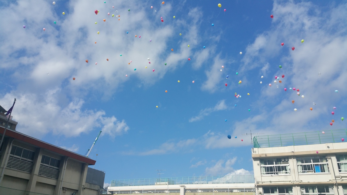 飛ばす予定時刻が時刻が10時50分なので、当日は自宅を6:00に出て学校には7時すぎに到着し、準備をして8時ごろから膨らまし、