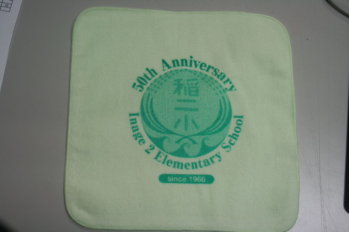 こんどはミニハンカチタオルです。これも先ほどの校章からモノクロに落としてドットデータにしてからプリントします。