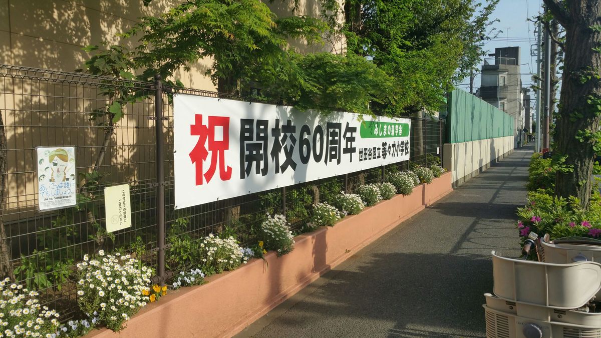 この時期は新年度周年を迎える学校様より春休みに取付、納品の依頼として、横断幕、屋上看板の依頼が多数あります。 見積もりいたしますのでどうぞご連絡ください、横断幕は面積で、屋上看板は字数で値段がきまります。