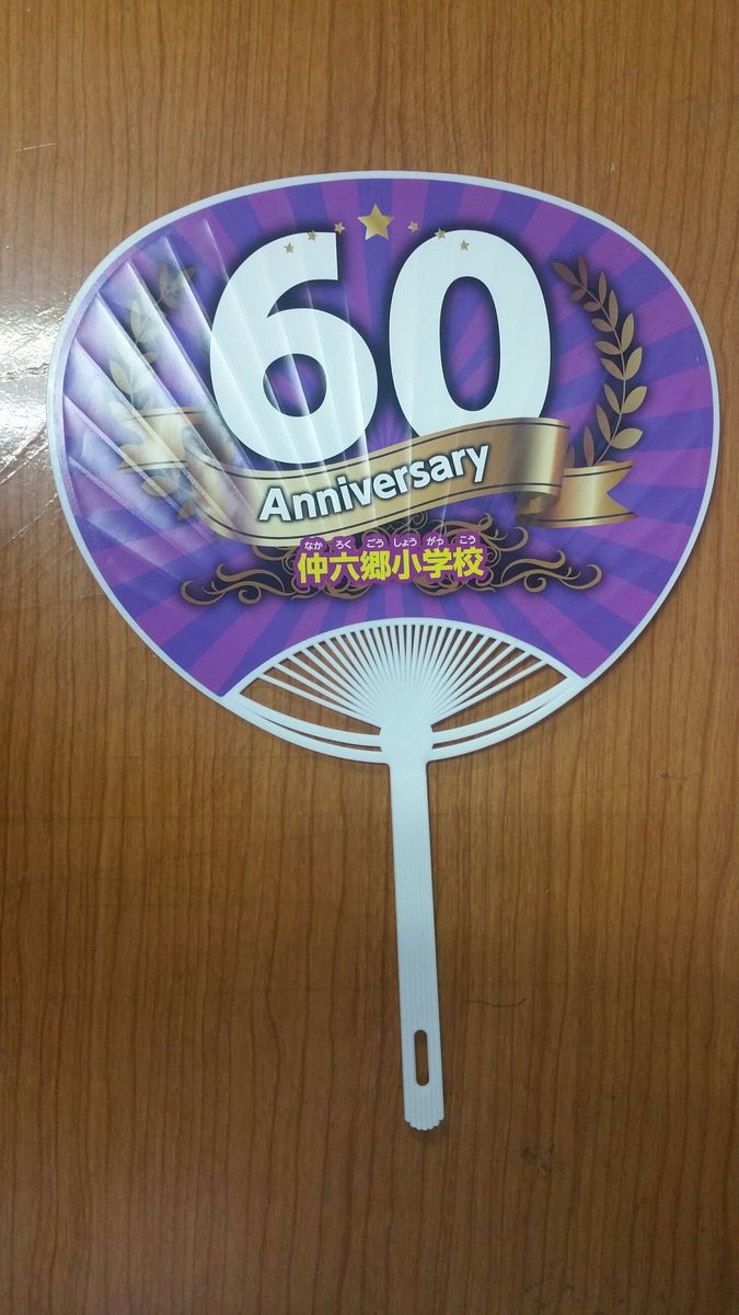 都内の周年を迎える小学校の依頼で週末の運動会に間に合わせるために記念のうちわを1000本作成しました。