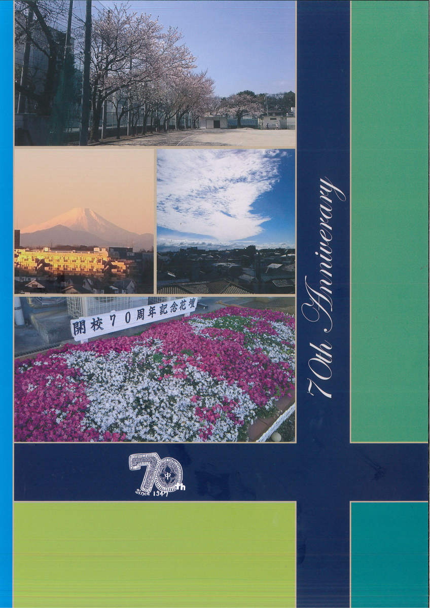 屋上からや校舎から見える表情を撮った写真をデザインしました。70は生徒から募集したロゴデザインです。