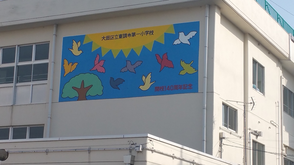 10年前の周年時に校舎の壁に描いた壁画が若干色褪せてきたので、今回新たに新しいデザインで壁画を描きました。