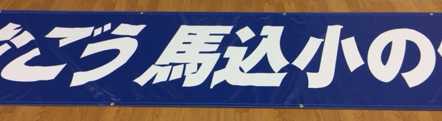 最近周年を迎えた学校様はキャラクターを作る小学校が多く見受けられます。 今回紹介する横断幕も児童から募集した中から厳選して更に先生方の人気投票にて2点に絞り、それらの良いところを取って一つのキャラクターの完成にこぎつけました。 そして10年間掲げておけるものにしました。 900x1000とかなり大きく、しかも丈夫な素材で取り外しも自由なので便利です、早速週末の運動会で地域にもお披露目が出来ます。