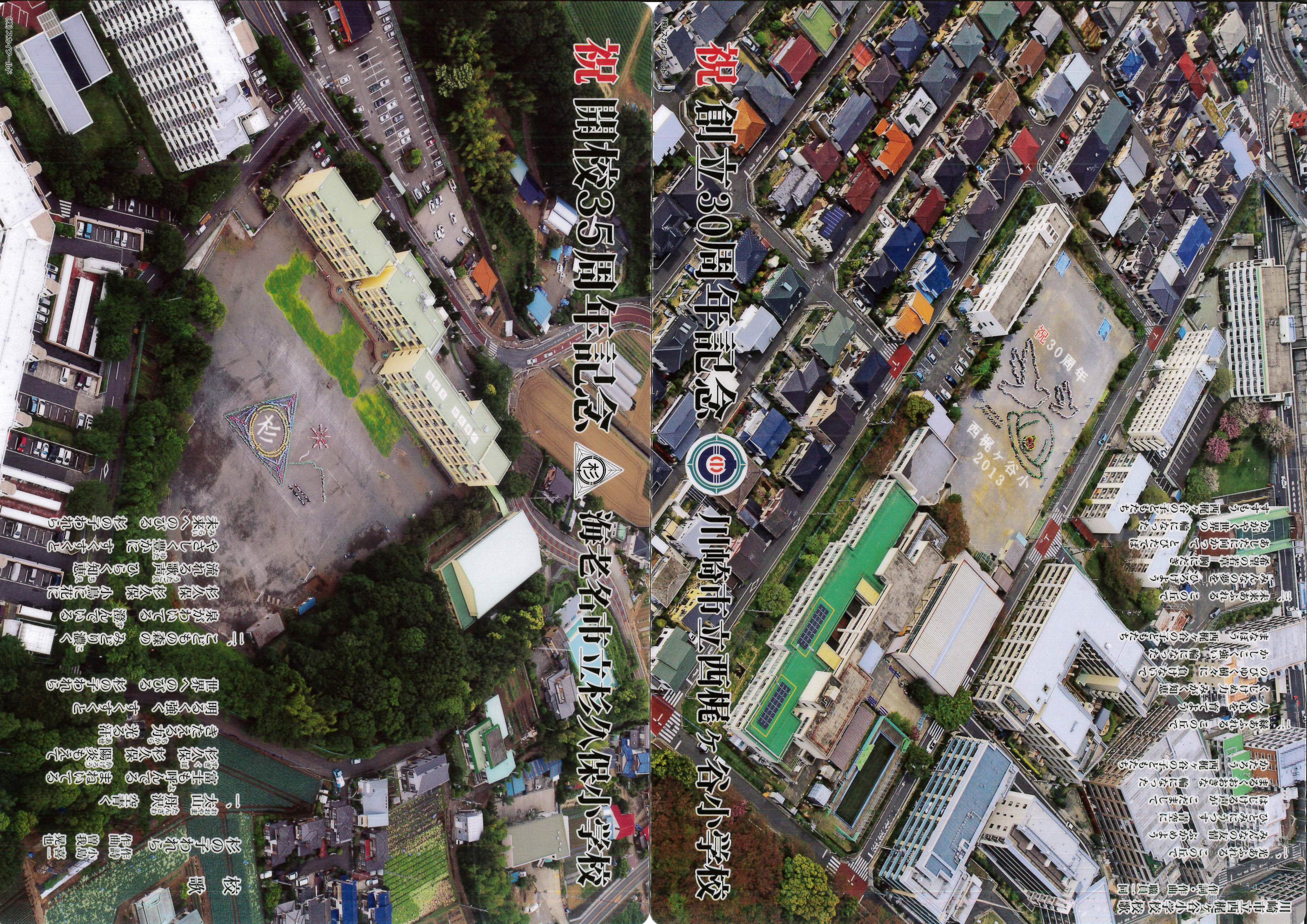 内容は表面が人文字、裏が全員集合がほとんどですので児童+教職員に配るケースが多くなっています。